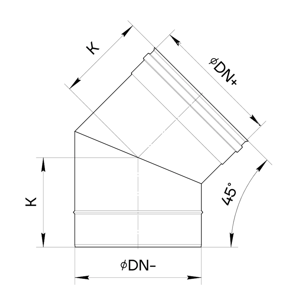 Коліно димохідне 45° одностінне Ø140 мм з нержавійки товщиною 1 мм "Versia-Lux" призначене для зміни напрямку димоходу під кутом 45 градусів.