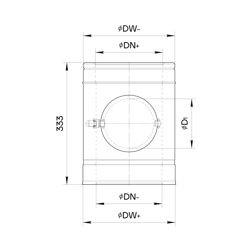 Ревизия двустенная из нержавеющей стали в оцинкованном кожухе предназначена для внутренней проверки, очистки дымохода и отвода конденсата, обеспечивая безопасность и эффективность системы удаления дыма.