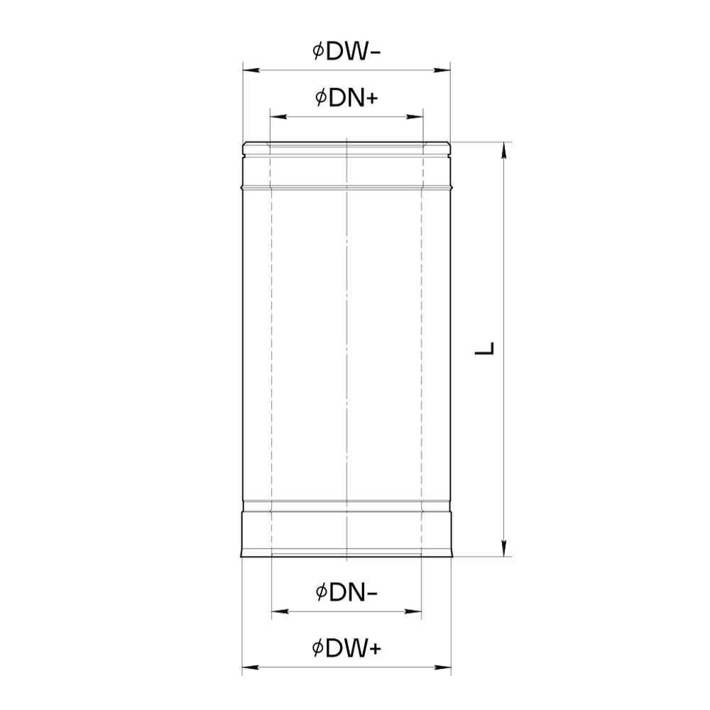Конструкція: Складається з внутрішньої труби з високоякісної нержавіючої сталі та зовнішньої труби-кожуха з оцинкованої сталі, між якими розміщено шар теплоізоляції з базальтового волокна високої щільності.